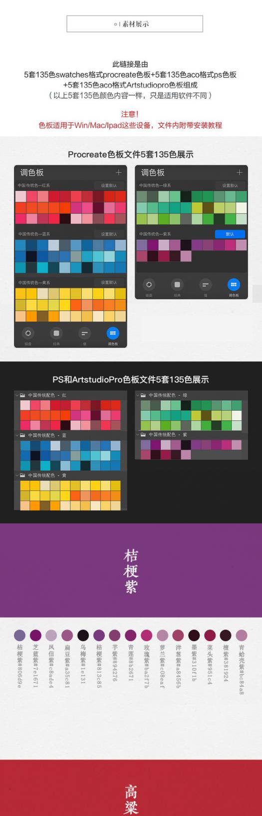 Procreate资源-传统配色procreate绘画色卡PS色板