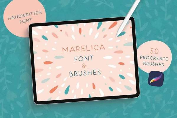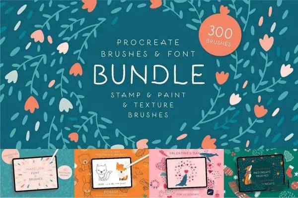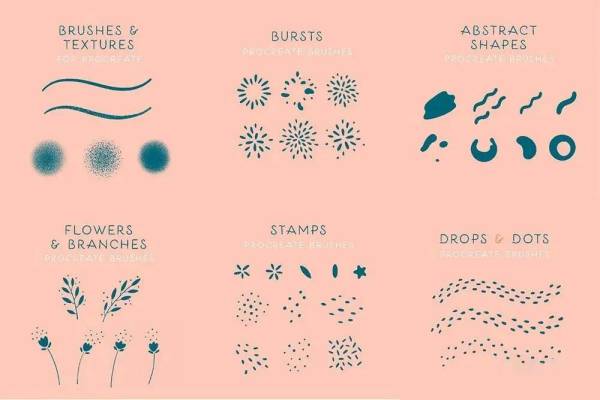 Procreate笔刷-Procreate花型笔刷混合包和字体素材
