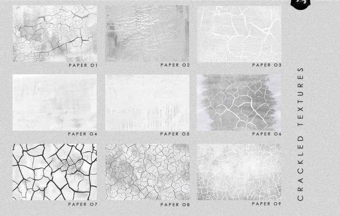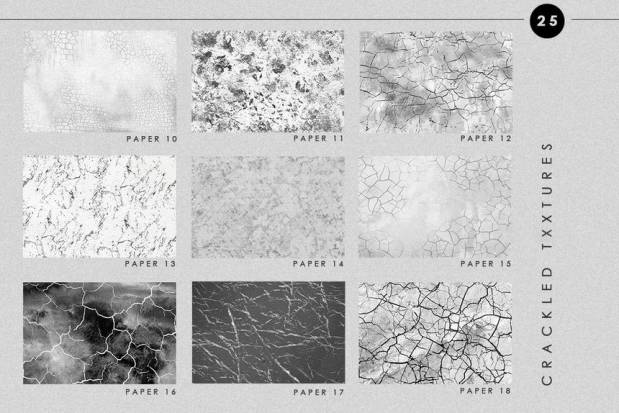 抽象大地裂纹纹理背景图片素材,总共有25张背景图片,纹理包含有:灰色、黑色和白色石头裂纹纹理,带有有机