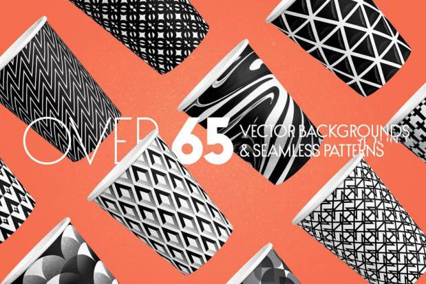 复古几何风格的抽象图案纹理矢量背景图素材,包含了65 多个独特文件,其中有30 个无缝矢量图案和 35 个