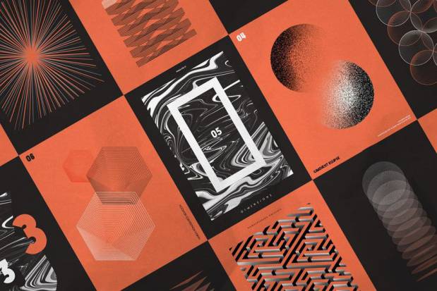 NWB Ultraviolent 的印刷特征。通过堆叠和移动图形来获得新的、意想不到的设计的创意——大多数文件