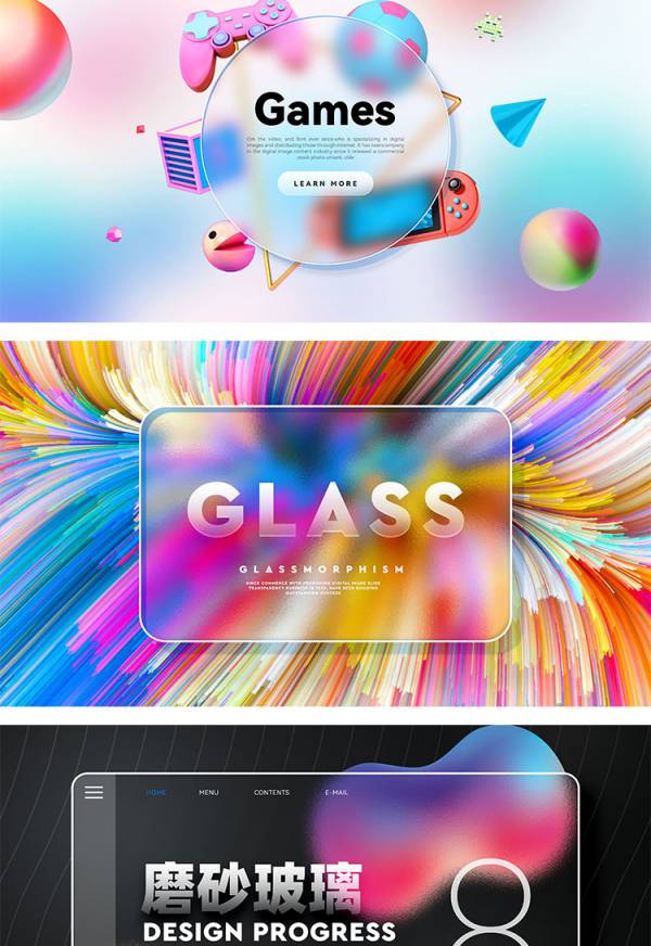 图穷设计网 » 背景素材-88款磨砂玻璃风作品集PSD背景合集