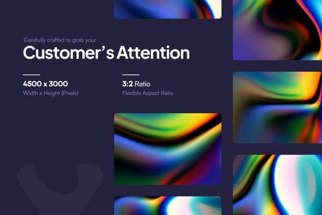 抽象扭曲的光晕渐变色纹理背景图片素材,总共包含了10张尺寸为4500 x 3000px, 300dpi的png图片。图片可用于