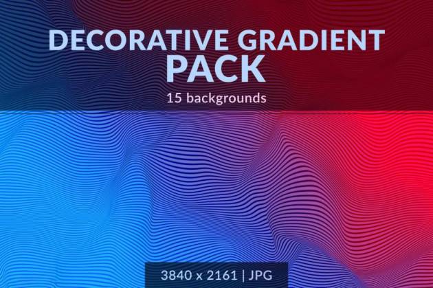 时尚线条效果的抽象颜色渐变背景图片素材,总共所有15张图片,图片为jpg格式,尺寸3840x2161px。