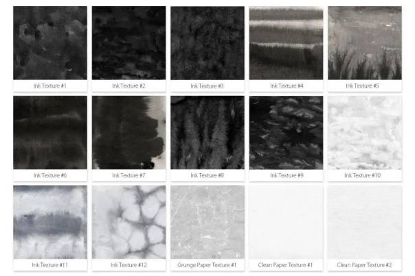 图穷设计网 » 背景素材-墨水艺术笔PS笔刷套装+背景图案素材