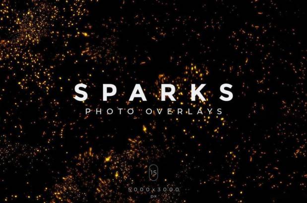 火花四溅效果的照片叠加背景图片素材,总共有15张不同效果的背景图片(5000x3000px,300dpi),建议