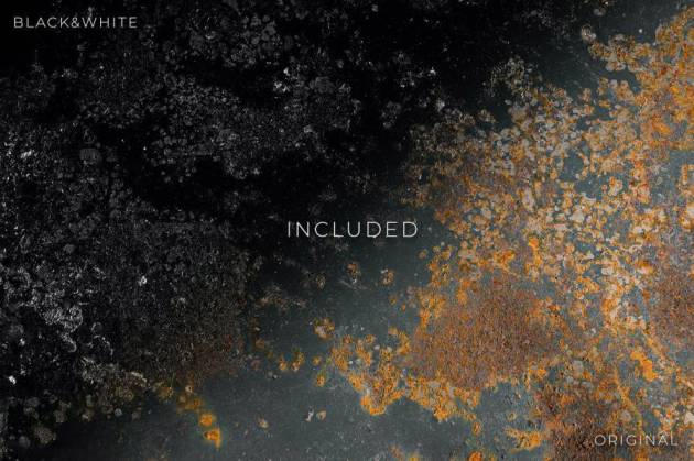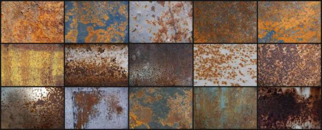 金属生锈纹理的背景图片素材,总共有30张不同锈迹纹理的图片,其中15张为彩色图片,15张为黑白色图片。