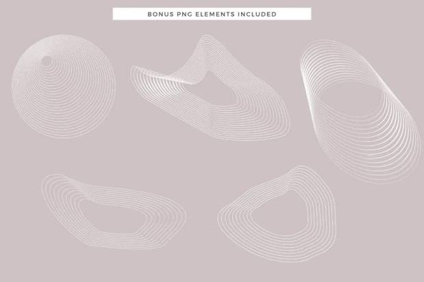 另外还包含了5张带有透明背景的白色 PNG 线条图形元素(尺寸在 2513 像素和 5819 像素之间)。素材用途广泛,