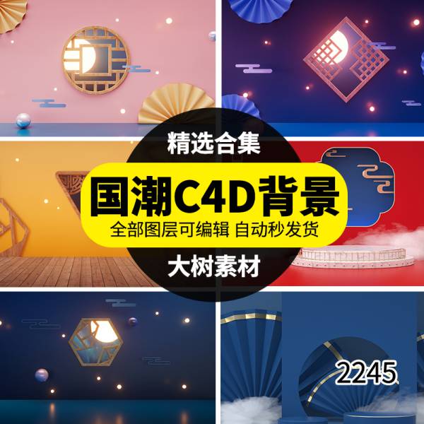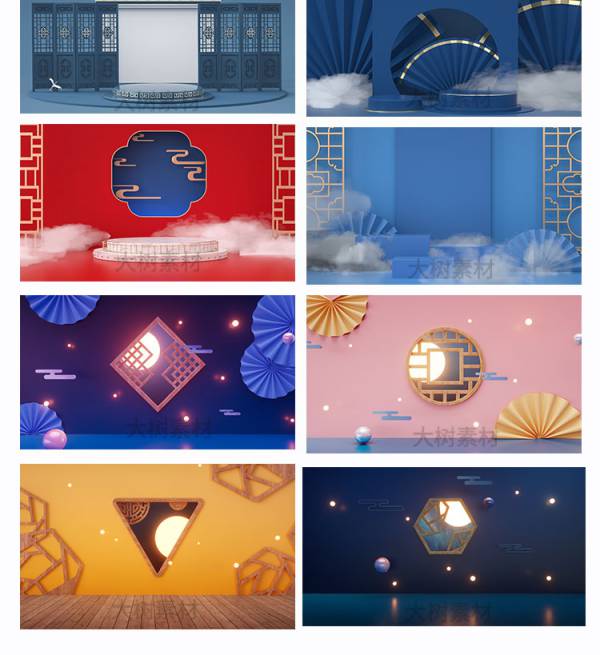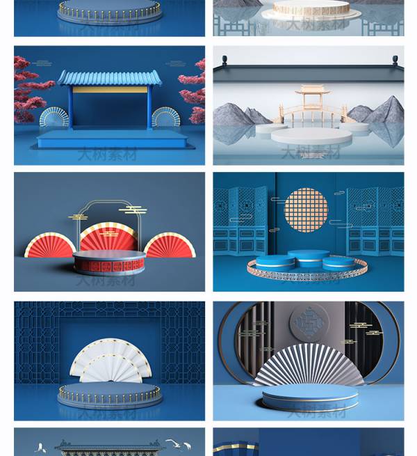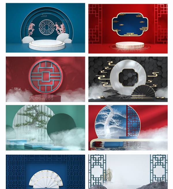 背景素材-国潮风中式古典场景产品展示台C4D格式文件高清立体海报背景图