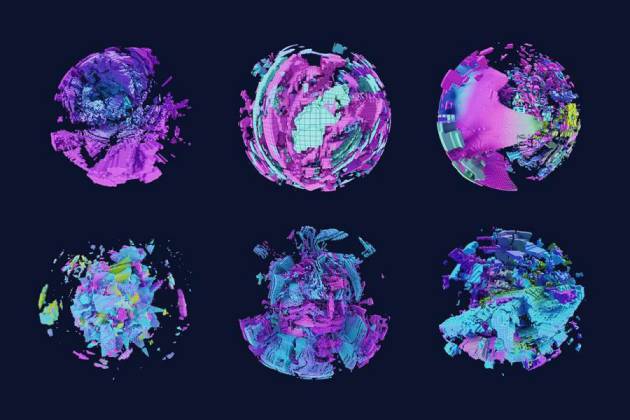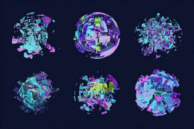 图穷设计网 » 背景素材-抽象3D立体几何形状拼接的球体背景图片素材