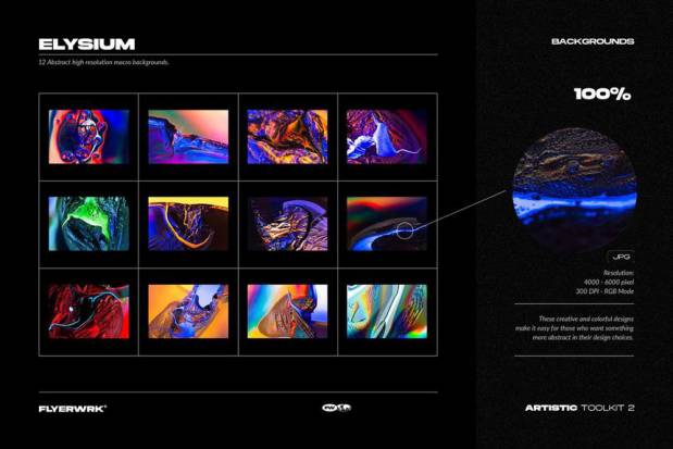 12 个充满活力的渐变、12 个粒状渐变、12 个 Elysium 抽象背景。