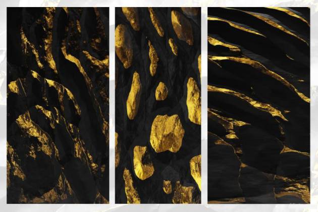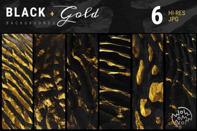 黑色和金色相间的纹理背景图片素材,总共有6张背景图片,背景图具有不同纹理效果,图片尺寸为4320 × 3240px。