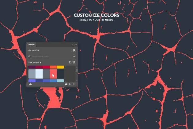 所有的划痕、地面图像和裂缝都巧妙地连接起来,经过重新配色呈现出独特的艺术效果,支持矢量文件 AI、EPS