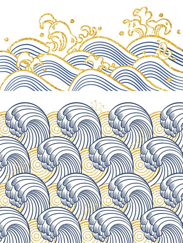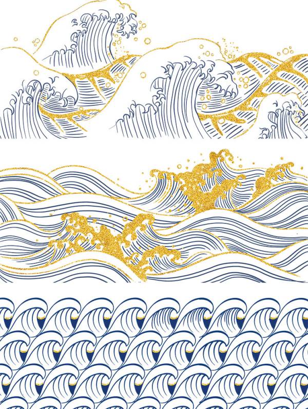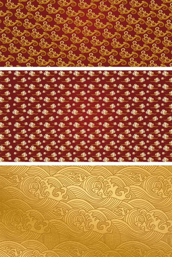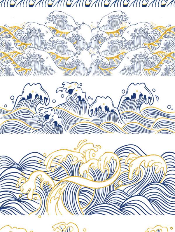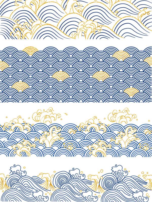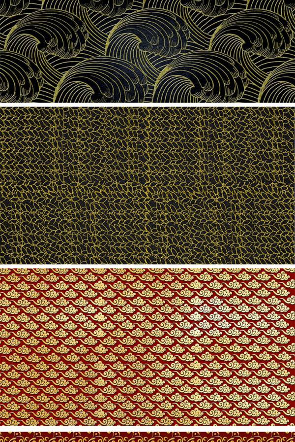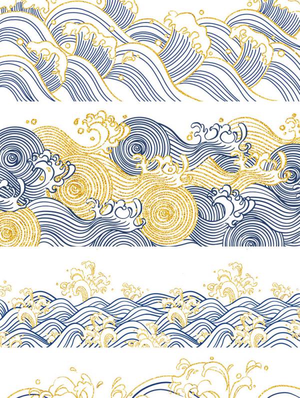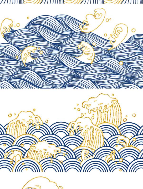 中国风鎏金浪花波浪背景20款