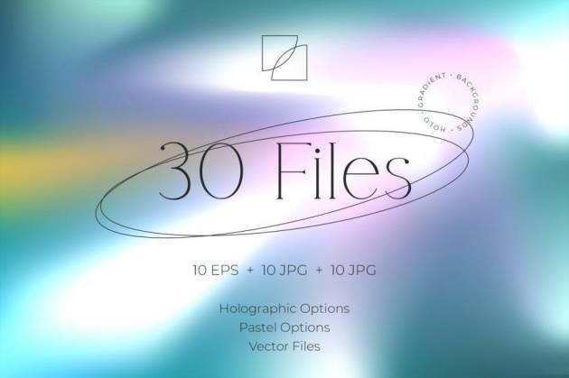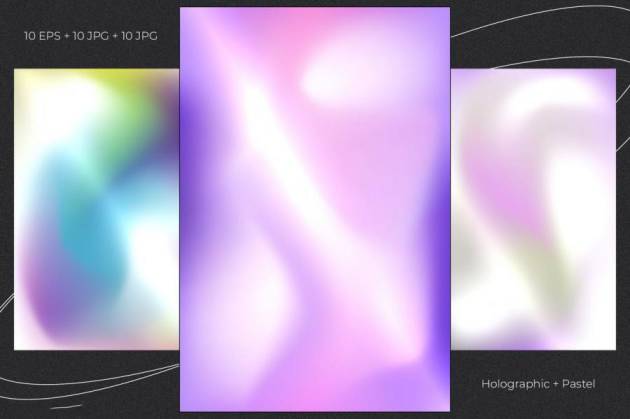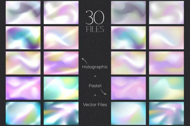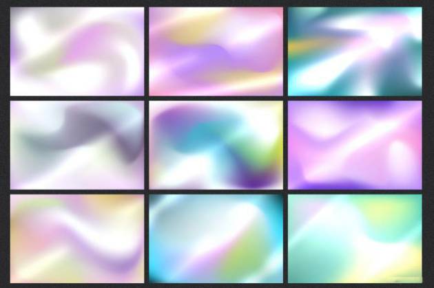 多彩全息渐变色晕染效果矢量背景图素材,总共有30张不同晕染效果的矢量图,10 张五颜六色风格的 JPG,