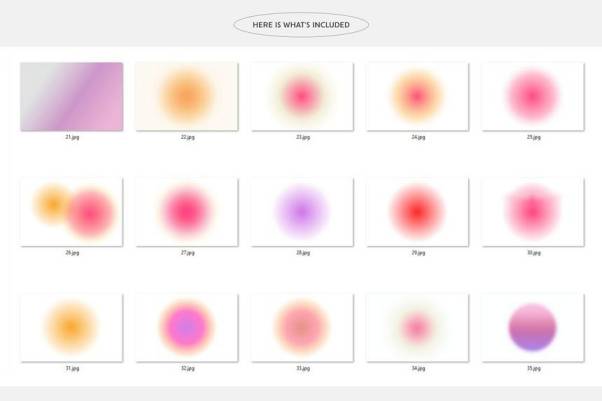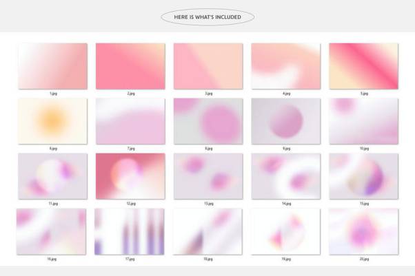 粉色系的极光渐变颗粒纹理背景图片素材,具有柔软、简约、女性化等特色,总共有35 张高分辨率JPG 渐变背景