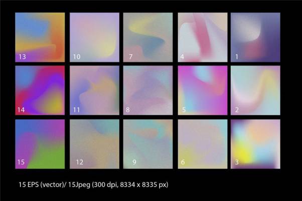 复古柔和模糊温暖效果的矢量纹理背景图素材,总共有15张纹理背景图,图片具有复古、柔和、模糊、温暖和霓虹色调,