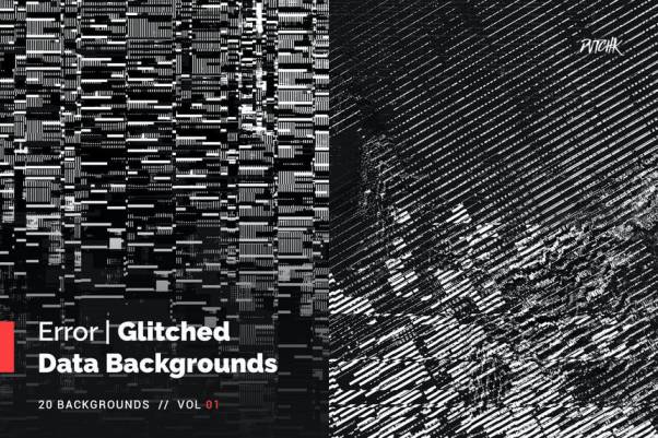 抽象的实验性错误故障艺术效果背景图片素材,总共有20张独特的故障艺术图片,图片尺寸为2000×3000px,300dpi。
