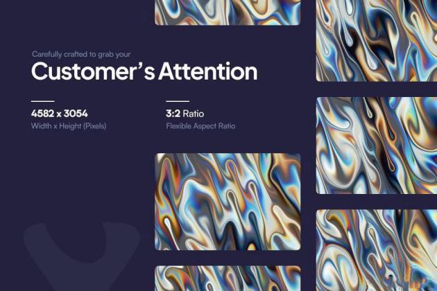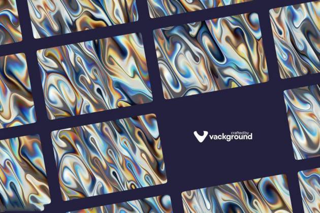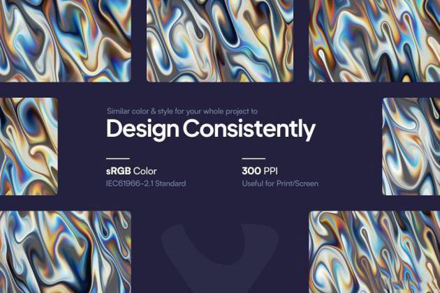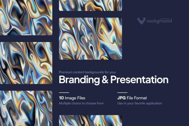 彩虹色金属液体流动镀铬背景图片素材,总共包含了10张不同流动效果的背景图像,每张图片的配色都不一样,
