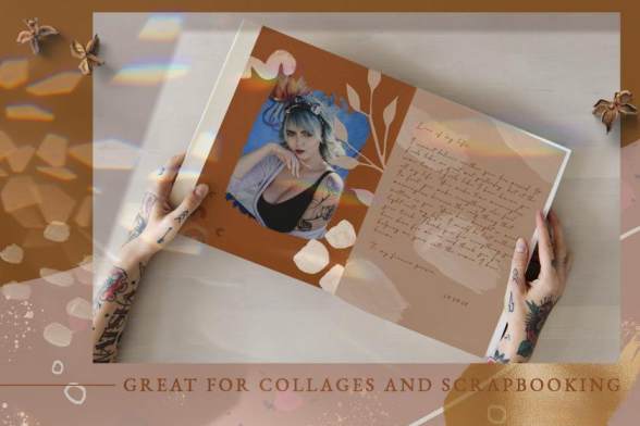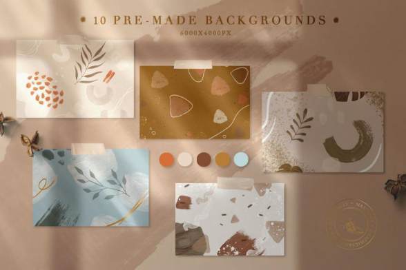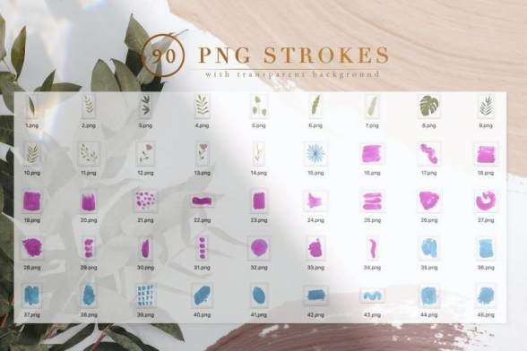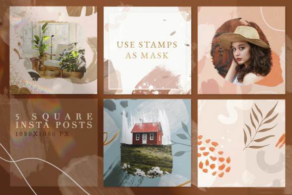 (300dpi,6000x4000 px),5个JPG格式预制的方形明信片(300dpi,1080x1080 px)和90个透明背景PNG
