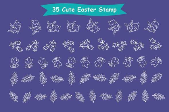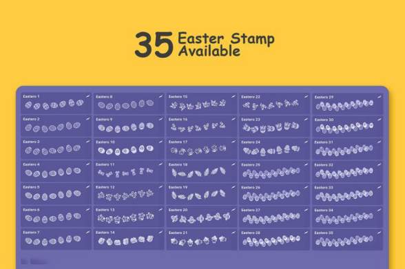 图穷设计网 » Procreate笔刷-复活节主题彩蛋树叶图案印章笔刷素材