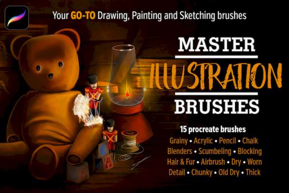 图穷设计网 » Procreate笔刷-铅笔丙烯酸颜料粉笔风格大师插画笔刷素材资源
