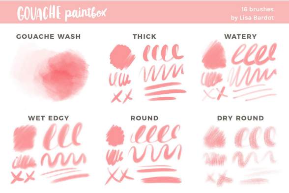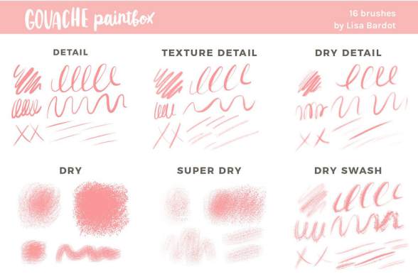 独特风格的procreate水粉颜料笔刷素材,总共有16个笔刷,包含了:水粉污渍笔刷、水粉厚涂笔刷、水性水粉笔刷、