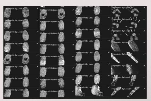 指纹手纹图案的procreate印章笔刷素材,总共有30个图案笔刷,包含有各种形状的指纹图案笔刷、