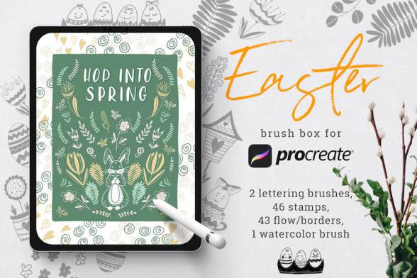 图穷设计网 » Procreate笔刷-复活节主题印章和水彩花卉笔刷素材资源