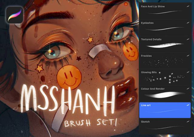 复古风格人像插画的procreate笔刷素材,是艺术家MSSHANH常用的笔刷,总共有10个笔刷(已汉化):