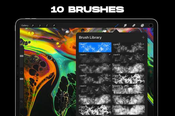 流动的液体图案Procreate笔刷素材,总共有10个笔刷,这些笔刷是由真实的液体图像组合而成的。精心制作