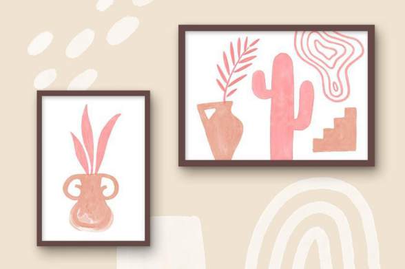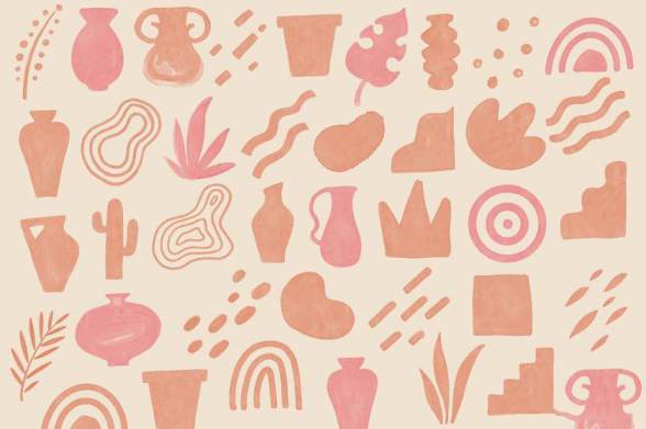 不同种类的树叶、植物和花瓶、装饰几何线条等等,水彩图案抽象创意,素材丰富,能够满足您多样的需求。
