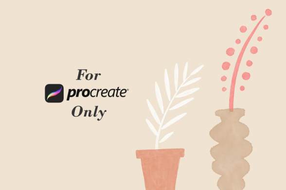 Procreate笔刷-花瓶树叶植物几何装饰性插画设计笔刷素材资源