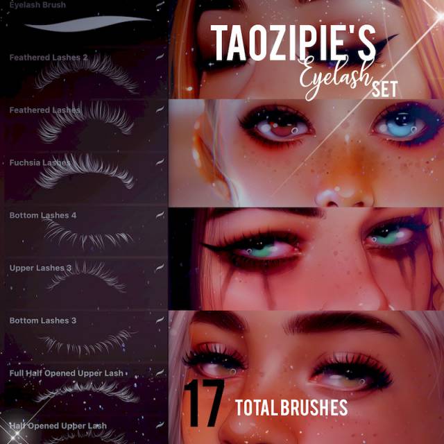 美妆人像Procreate笔刷和色卡素材,素材包含了17组共300+笔刷,笔刷包含了睫毛笔刷,眼影高光笔刷,