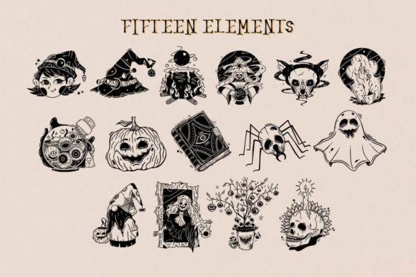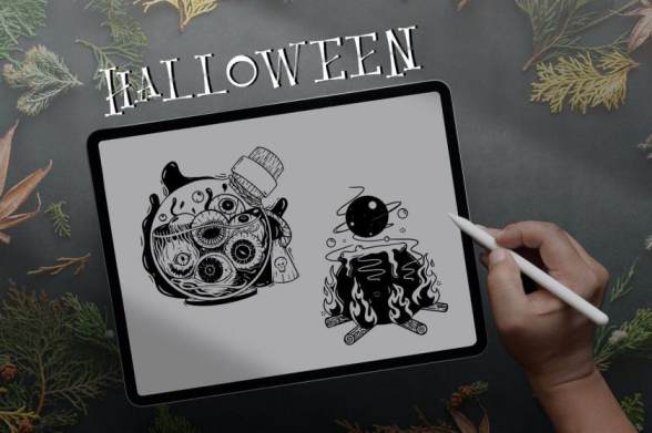 Procreate笔刷-万圣节主题印章图案笔刷素材资源
