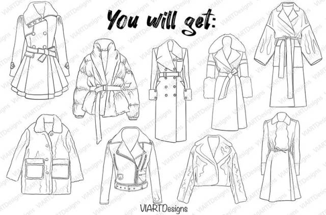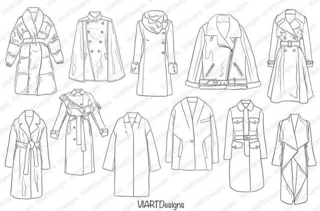 皮夹克、羊皮外套、泰迪外套、大衣、风衣等。素材为Procreate软件专用格式,导入iPad绘画软件