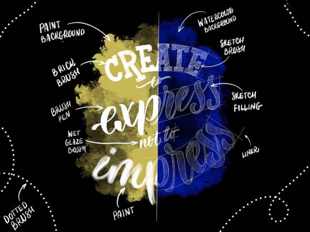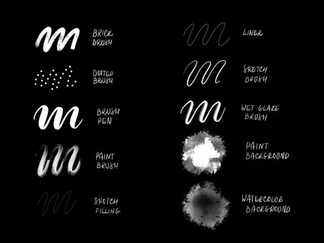 一套绘画和艺术字的Procreate笔刷素材,总共有10个笔刷,包含有:粗画笔、细线条画笔、点状画笔、干画笔、