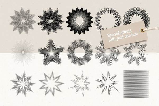 一些很棒的特殊效果并加快您的工作流程,因为您不必手动绘制效果。您还可以使用这些图章来修饰您的照片,