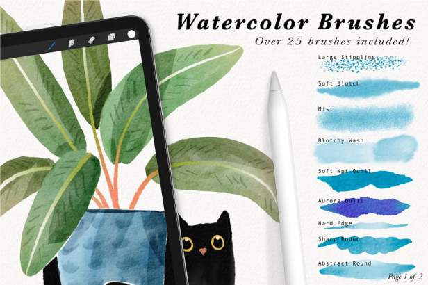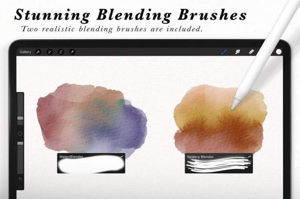Procreate笔刷-水彩画混色涂抹绘画笔刷素材,适用于procreate的水彩画笔刷素材集合,