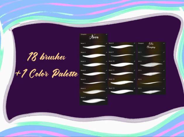 Procreate笔刷-霓虹灯艺术灯条笔刷素材及色卡