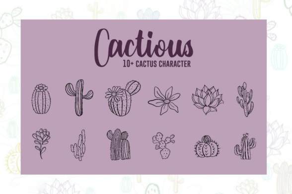 仙人掌简笔画图案procreate/ps/afinity designer笔刷素材,共有10个以上仙人掌主题图案,绘画风格简约现代,