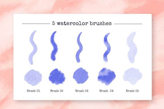 此套笔刷素材包括了5种不同质地和形状的优质笔刷。画笔01和05更柔和,可以创建那些平滑的覆盖和背景。画笔02和04