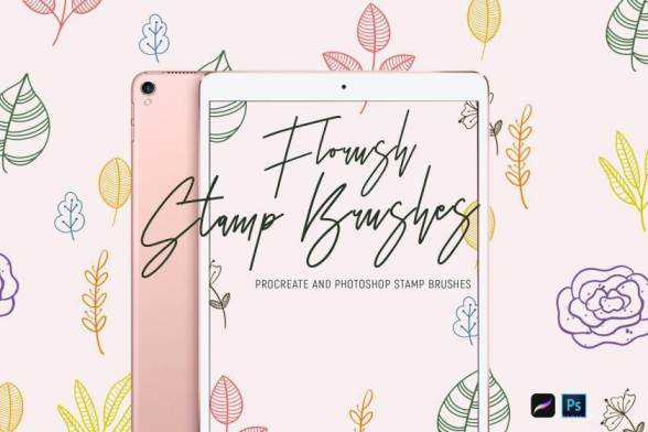 图穷设计网 » Procreate笔刷-笔刷资源-彩色简笔画植物印章图案procreate和ps笔刷素材