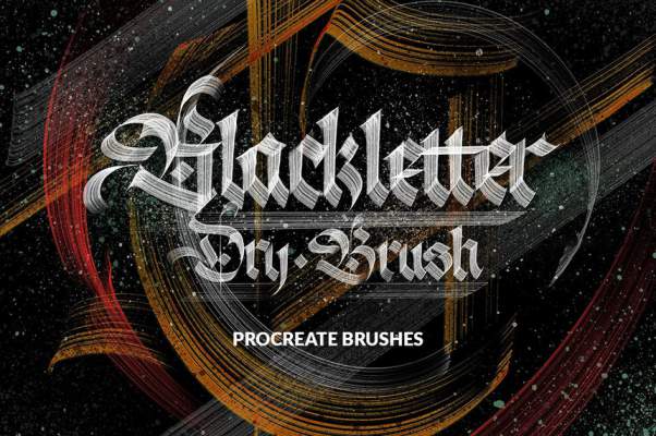 一套黑体字钢笔书法效果的Procreate文字笔刷,可手写出特色的哥特式文字。这套笔刷包括总共 20 个 Procreate 画笔,