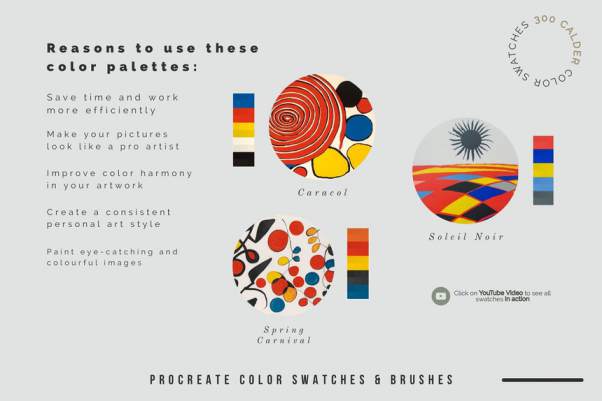 图穷设计网 » Procreate笔刷-水粉水彩油画线条考尔德(Calder)艺术创作笔刷和色卡素材