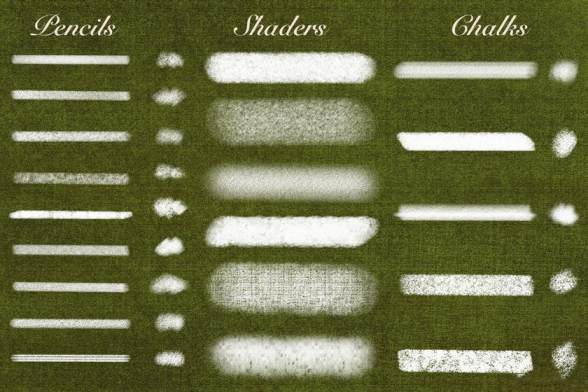 Procreate的多功能插画笔刷素材,素材有20种多功能笔刷,包括9种铅笔效果笔刷、5种粉笔效果笔刷、6种