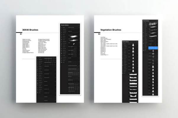 图穷设计网 » Procreate笔刷-网格植物画笔铅笔图案笔刷及背景图色卡素材包