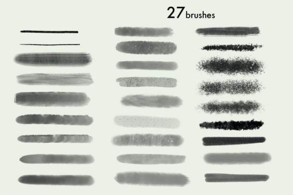 独特的柔软透明纹理效果Procreate笔刷素材,素材包括20个油画笔刷、5个纹理笔刷和2个铅笔笔刷,总共27个刷。