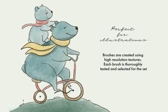 笔触看起来柔软逼真,像水彩笔刷一样。非常适合用来创作插图、素描、带毛发的动物、可爱的人物等。该素材