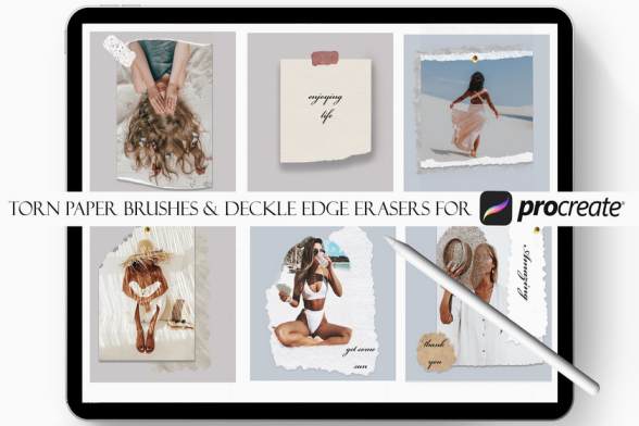 的橡皮擦笔刷。你可以将照片或设计稿的边缘用笔刷处理成撕破效果。您需要iPad Pro,Apple Pencil(或兼容的